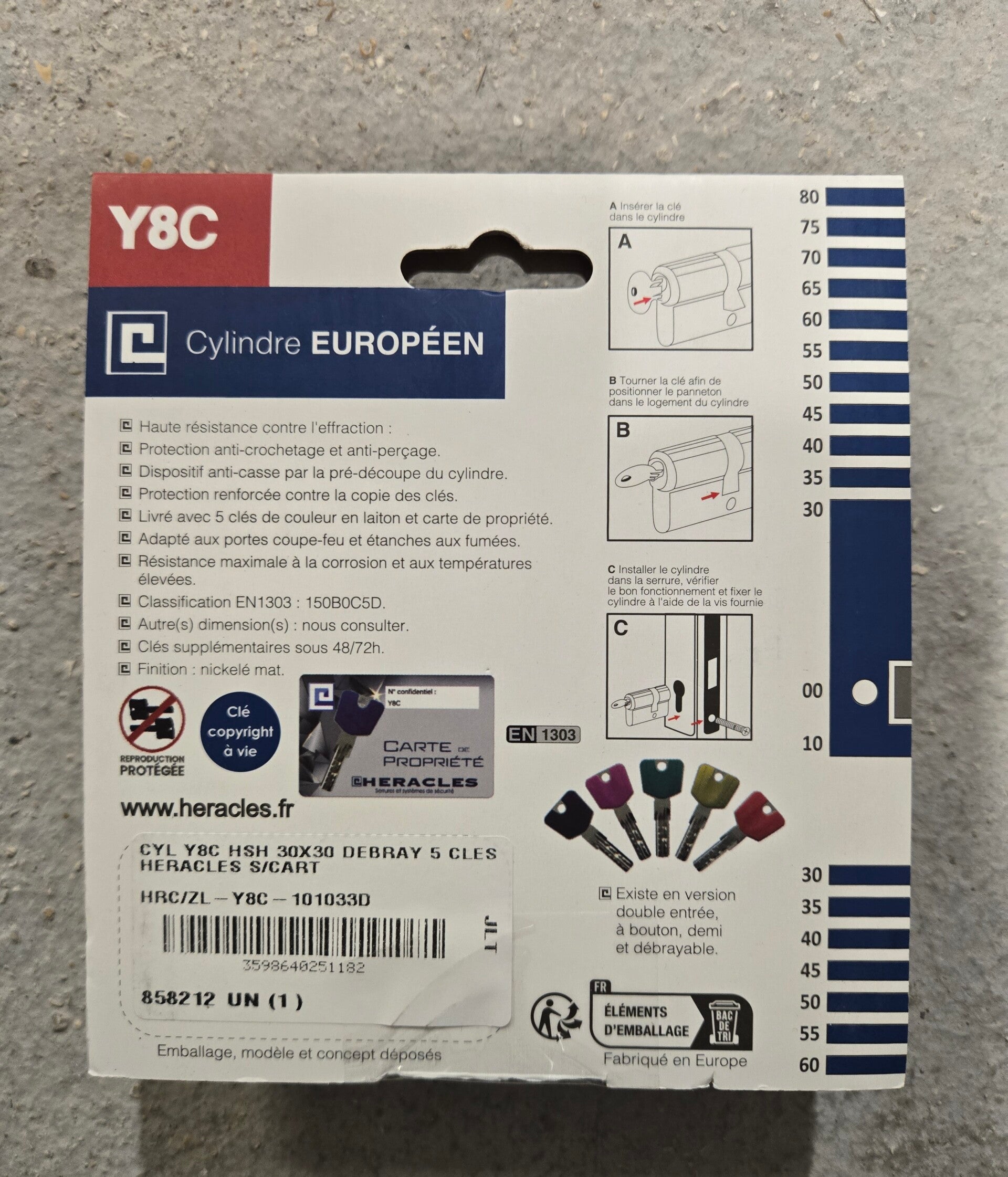 Cylindre à double entrée Y8C HSH 30 X 30 mm HERACLES Y8C 5 clés
